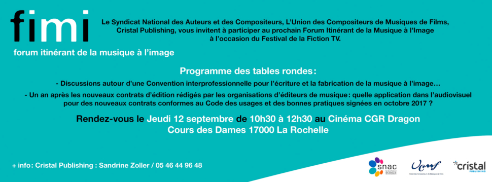 Forum Itinérant de la Musique à l’Image : table ronde, 12 septembre, festival fiction TV La Rochelle